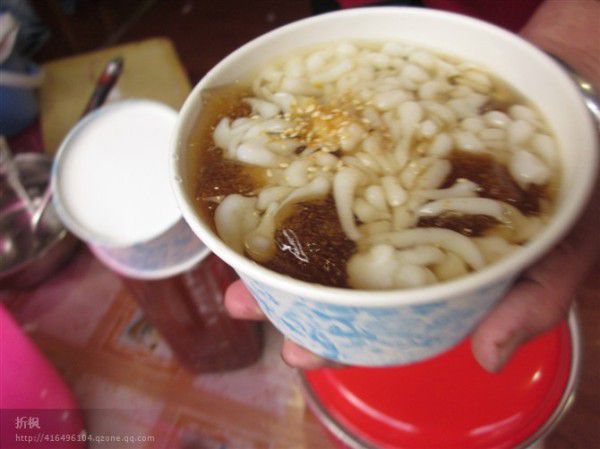米凉虾 3元/碗。 黄色的是椰子粉,白色的是大米。 像是吃加了糖的白凉粉。 不值这个价钱。不好吃。