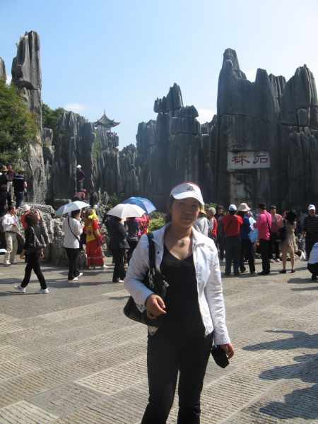 按照计划今天先去石林,再从石林到宜良。6:00我就起床了,可是老婆却赖在床上睡懒觉,怎么也叫不醒……没办法,还是先打开电脑收菜吧……8:00老婆终于醒了,七忙八乱的在9:00终于出门了。我们坐公交车到昆明东部客运站,这里有到“石林风景区”的车,每人25元,8点开始人满就走。9:30的车只有一个空位了,我们被带上9:50的车,很快人就满了,9:45车子出发了。