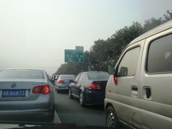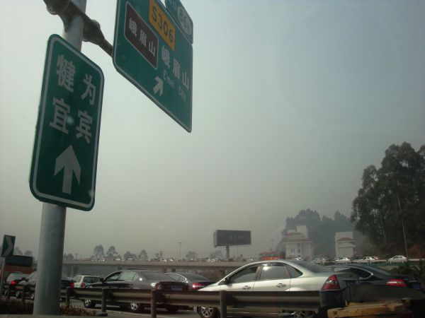 我深刻感受到了成都人民酷爱与大自然亲密接触的热情,有一段路上基本就是龟速前行。但是小东子和何哥哥两个都特别能耍,一路上欢声笑语分散了不少堵车的郁闷。沿途还遇到了好几起交通事故,大家都赶路心切,不过这也应验了一句老话:欲速而不达。在乐山高速下收费站处,又是一次全面大堵车。