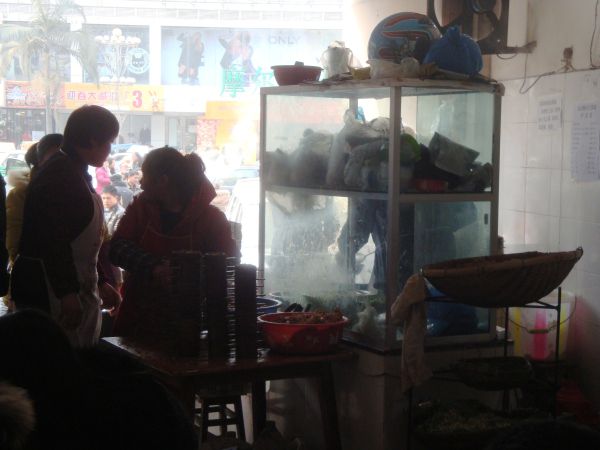 店铺座落在在兑阳湾对面的菜市口上的头一间极其普通的门脸,若没当地人带估计找起来是有困难的,但店里人气超旺,基本桌桌爆满。