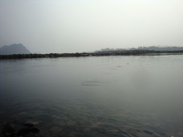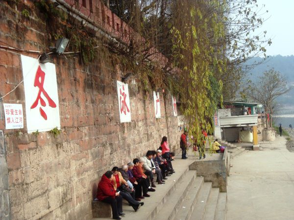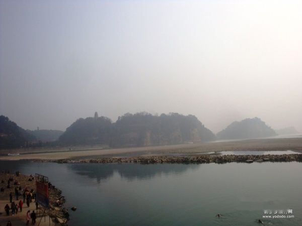吃饱喝足,我们首先驱车前往了乐山的冬泳广场,在这里可以看到乐山的水中卧佛。
