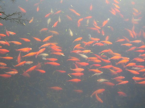 暮色中,我们欣赏着人间美景,时间也在不知不觉度过。大约走了一个小时,我们看到了出口,此时天色已晚,出口处的花港公园已是景灯绽放,看着人们意犹未尽的样子,我们也进去小逛了一下,嘿嘿,里面的鱼还真不少呢!