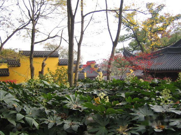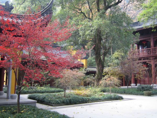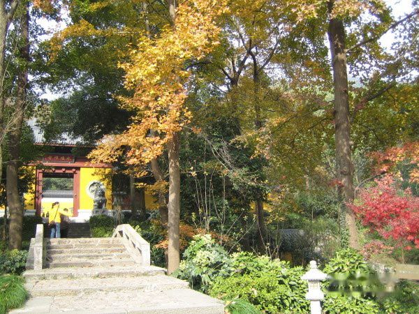 参观完石刻,我们见到了灵隐寺主殿区。随行的那个团队要进去烧香拜佛了,我们与之分道扬镳,继续前行。在灵隐寺游览,我觉得很惬意。因为尽管是在寺中游,但处处自然风景怡然。前行的路上依旧是有一些小的寺院。在一个东晋古刹——永福禅寺的地方,我们停下脚步。这哪里像寺院?除了那黄墙红顶让我觉得还是寺院的标志,更多的是田园般的景色。