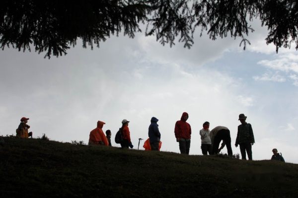 驱车大概两个小时(因为G216在修路,所以路况非常不好,行驶非常慢)我们来到了离天文站大概5公里处的东大梁,将车停在马路边后,大家背起自己的行囊开始了一天的穿越。