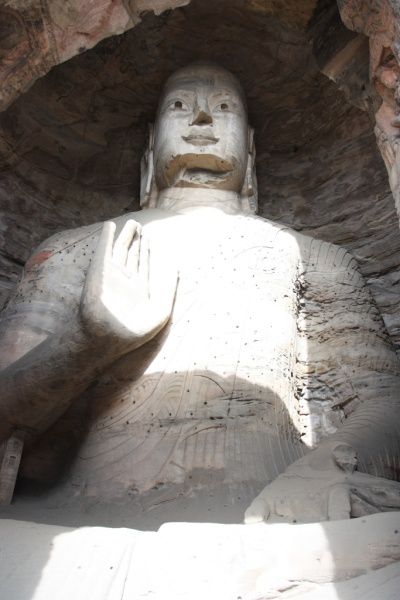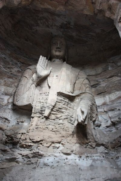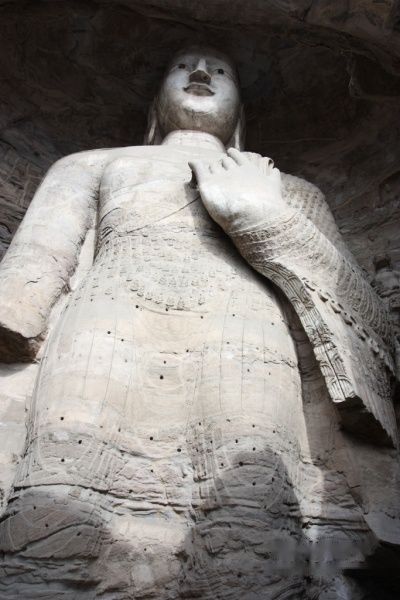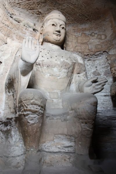 第三窟是未完成的石窟,如果完成,将是云冈规模最大的洞窟。其中的西方三圣阿弥陀佛、观音菩萨、大势至菩萨雕得很好,保存得也好。