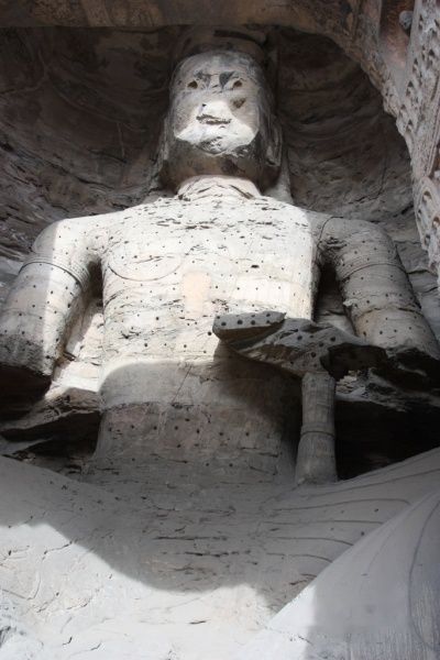 昙耀五窟中,16、18、20窟雕得好,19耳洞雕得不错,但主佛头像的下巴崩了,遗憾!17窟不行,雕得不好,比例不当,佛大窟小,保存也差,面部已毁。