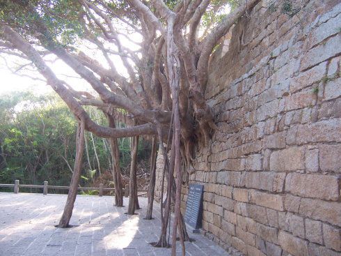游览东山风动石景区“虎崆滴玉”景点后,按原路线返回到另一个景点——“铜山古城”的城下,这里有一株奇特的古榕树。