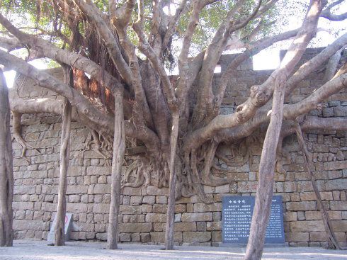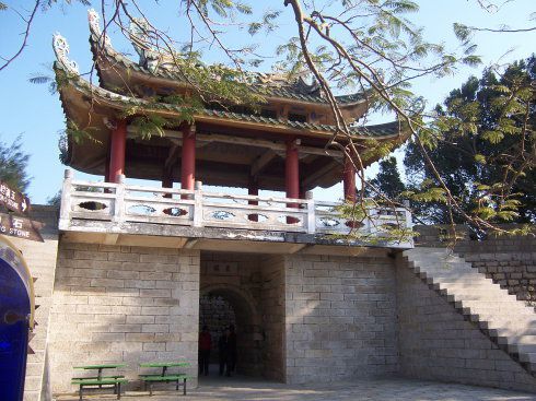 位于闽南与广东汕头(仅60多公里)毗邻的东山县风动石景区——“铜山古城”。据说,铜山古城始建于明洪武二十年(1387年),朱元璋为防御倭寇侵犯和反明势力的骚扰,派江夏侯周德兴到铜山选择险要地势,建防御工事。原古城周长571丈,高2.1丈,女墙864个,窝铺16个,设有东门“晨曦”、面门“思美”、南门“答阳”、北门“拱极”四门,是外卫所,与福宁的烽火、连江的小亭、兴化的南日、泉州的浯屿并称为全闽海疆的五大古城。铜山古城记载了东山军民顽强抵御外敌入侵的英雄赞歌,站在古城,凝视大海,海浪不停地轻拍着古城的岸边,像是向人们诉说着那逝去岁月中发生过的一幕幕往事。