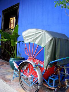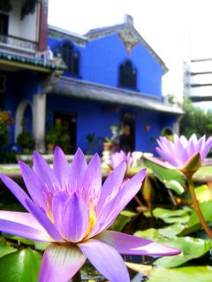 有没有一个地方,让人可以穿透时间的屏障,从眼前的漠漠尘埃,一眼看穿到几世前的时光。。。那就是槟城,那就是蓝屋。那是坐落在“莲花河路”之上,有着蓝宝石般美丽墙壁的房子。在那里,仿佛可以仍旧听到当时的朗朗笑语或哀哀倾诉,仿佛三轮车永远跑在庭院外的马路上,仿佛那传说槟城蓝花酿成的汁液,不论岁月风雨,都成就着蓝屋骄人的美丽。。。而这美丽,让人看过心底竟会痛起来,有瞬间被穿透的感觉,耳边不再是北京春节未尽的炮竹声,而是隐隐传来南国的锣鼓和海浪声。。。