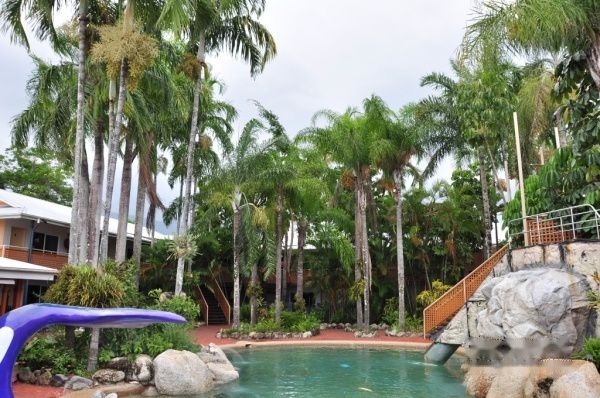 这是我们在凯恩斯住的酒店,就仿佛置身于热带雨林里一样,房间都在二楼,可以有效与地面的潮湿隔离开来,院子里的植物也具有热带典型特征,什么棕榈、鸟巢蕨啊的都有,院子中央还有个不规则的室外泳池,随时可以享受其中...
