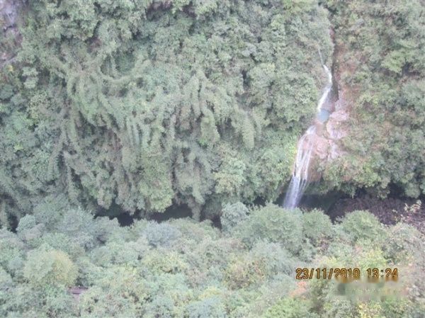 从崖洞上向下看,那像是玩具屋,更显神秘,只有导演才有想到这种地方!这还不,从到峡谷底往刚走过的楼梯向悬崖上看,突现黑衣人从天而降的感觉,太壮观了!驿站向前一点中间就是整个天龙天坑直径有522米,深276米,天呀!原来此是塌陷形成的。此时的驿站和罕见的景观真是让人不可接受自然的鬼斧神工!