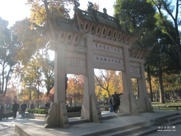 进入景区,穿过范仲淹纪念馆,登到观枫台,俯瞰山下居然没有发现想象“只道天酒洒枫林,群山流丹似醉颜”(杨万里-红叶诗)的景色,大为失望。