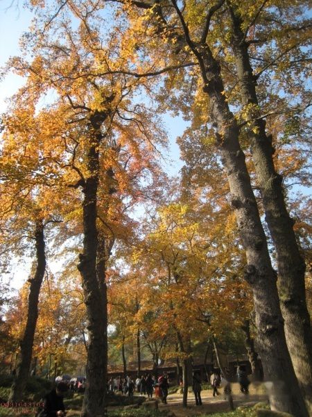 下山来,转入到古枫林。在林中只看到少数红红的枫树。心想,既来还是拍几张吧。