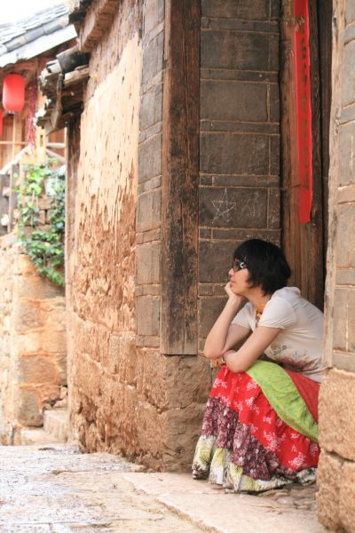 束河其实就是一个小点的大研镇,一样的四方街大石桥,只不过商业气氛没有大研镇那么浓。整个古镇比较安静,连酒吧都是静静的。束河分新区和老区,新区主要是一些酒吧餐馆咖啡厅,老区没有太被开发,有很多当地特色的古建筑。我们在去的路上就开玩笑说,其实我们就是把血拼的战场从大研镇转移到束河。果不其然!而且幸运的是,我和小方都在这里买到了自己心仪的大花裙子。心满意足的我们终于考虑了老徐的需求——真正的体味古镇。体味古镇的结果是:穿着民族风情的大花裙子,在古老的石头路石头墙泥巴房子前留下一张张照片以作为我们回味古镇的线索。