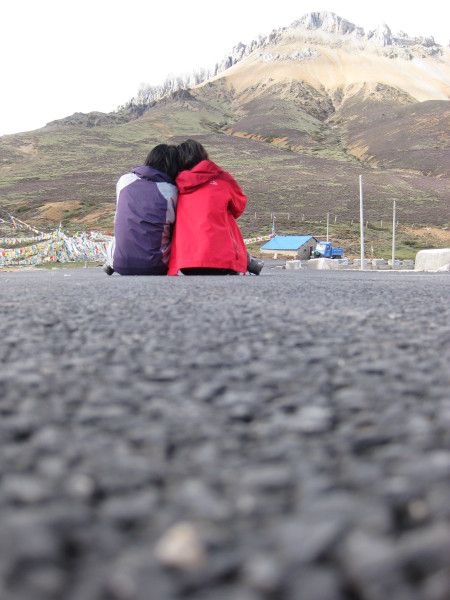 离东竹林寺不远有个尼姑庵叫书林,在回程的时候,因为全车只有我一个人拍到金山日照中的卡瓦格博,小刘师傅说我是有佛缘的人,叫嚣着要把我留在这个尼姑庵里陪雪山。接受完虔诚的洗礼,我们奔赴梅里雪山所在地德钦,途中需要翻越海拔4292的白马雪山垭口。途中的景色依旧美丽,我和小方仍然在亢奋。车子停在白马雪山垭口加水站,小刘师傅指着云雾里的雪山说那就是白马雪山了。我和小方当仁不让首先跳出车子往山坡上跑去。说到跑,那真是跑啊,在海拔四千多米的地方跑啊。来到云南这几天一直阴雨连绵,这是第一次看到雪山阿,我们欢呼着雀跃着,兴奋的摆着各种各样的姿势和雪山合影。兴奋的后果是感到明显的气喘和轻微的头晕。要淡定淡定,我心里不断提示自己。