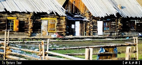 图瓦人村落就在喀纳斯快餐厅不远,基本都是木楞房,门口都写着“家访”的牌子,看来都是要收钱的。觉得这些房子与在内蒙古室韦看到的俄罗斯木刻楞差不多,也就没有进去细看,在远处拍了一些外景。