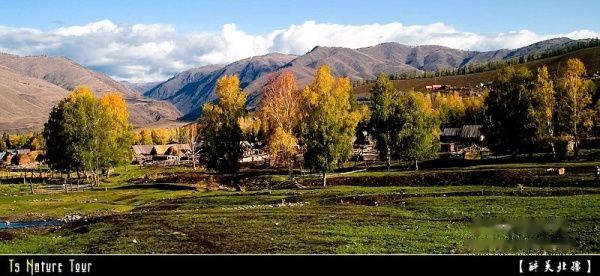 布尔津至贾登峪大约有170公里左右,路上还是很多限速路段,有限速80公里的、60公里的,甚至还有限速20公里的,不知路况那么好的路段干嘛要限制那么低的速度?这一路要翻过几座较高的山脉,盘山路很多,速度也无法提起来;越是接近贾登峪,路边的风景就越漂亮,不断要求司机停车拍照,磨磨蹭蹭直到10:30多才到贾登峪。