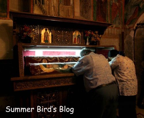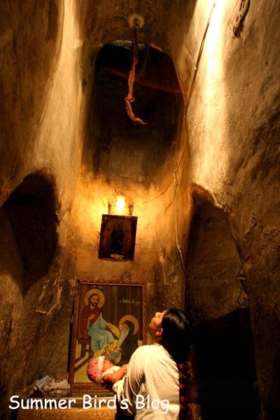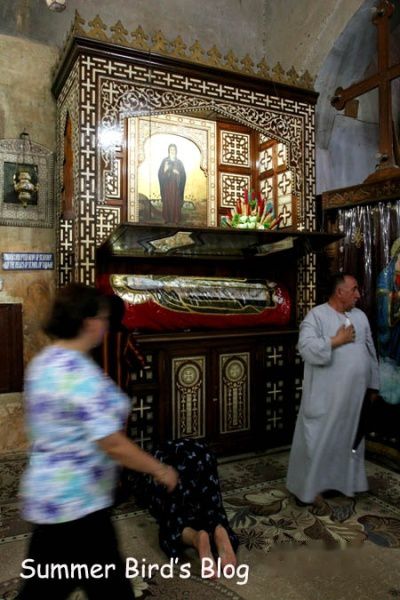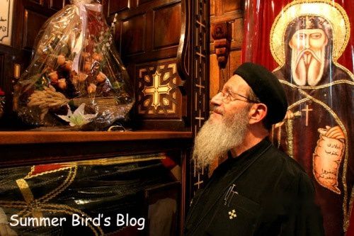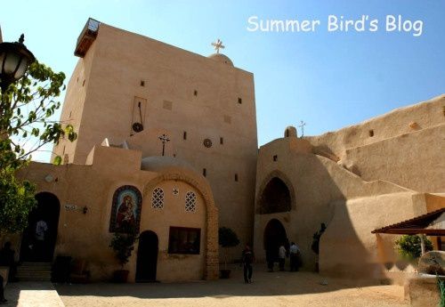 我首先参观的是圣毕晓伊隐修院,这是科普特教教长谢努达的官邸。圣毕晓伊是5世纪一位心地善良的隐士,有一次他替一位陌生人洗脚,后来才知道这位陌生人就是耶稣基督。这座带围墙的院落的中心是一座教堂,