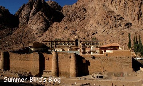 高达2285米的西奈山(在阿拉伯语中称为“盖布尔穆萨”,即“摩西之山”)耸立在圣凯瑟琳隐修院的后面。它就是《圣经》中的何烈山,摩西在这里停留了40天,接受记录着上帝“十诫”的法版。