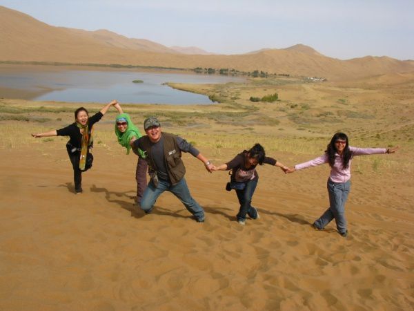滑沙完毕,我们继续起程,经过两处很大的湖泊都作了停留。