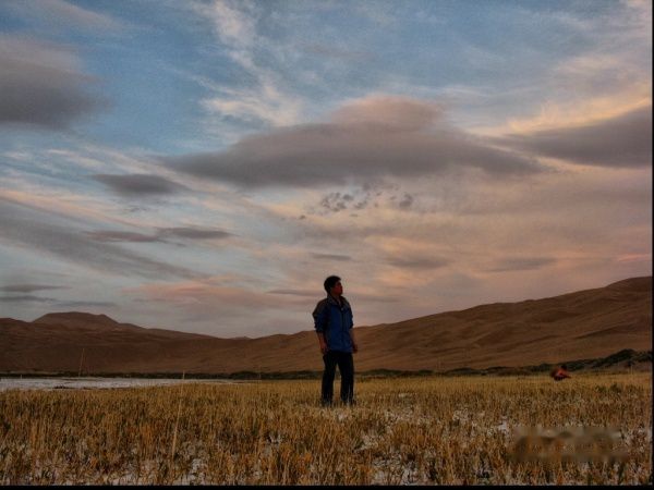下午我们有个重要的行程——徒步攀登世界最高的沙山,必鲁图峰!它海拔1617米,相对度500多米,比撒哈拉大沙漠高峰还高70多米,俗称“世界沙漠珠峰”。在湖边休息得差不多了,司机便把我们送到山下的大本营。