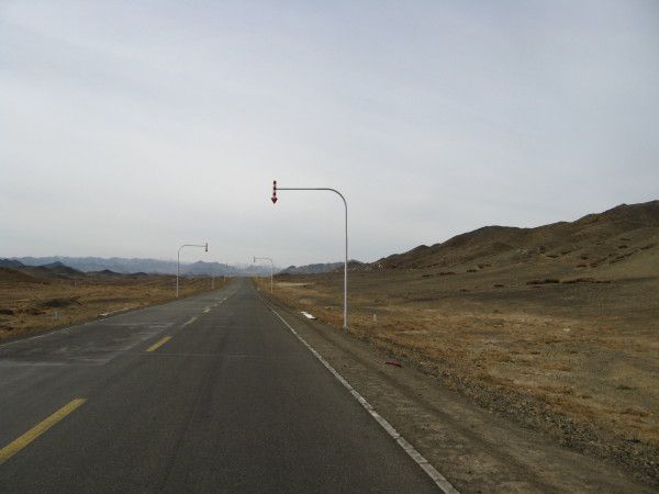 巴里坤到木垒车票45元,车子是周末加开车,只容10多个人。注意在小县周末多为休息日。到木垒的路状很好,在路的转弯处有高高的下箭头指示,司机师傅讲这是为了在雪天提示司机注意的标志。