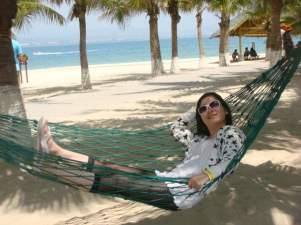 人们或是一动不动的静躺在吊床中,或是自己轻轻摇摆着,自娱自乐。我们也找了一处阴凉的吊床享受了一下难得的海滨小憩。