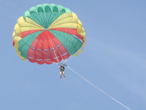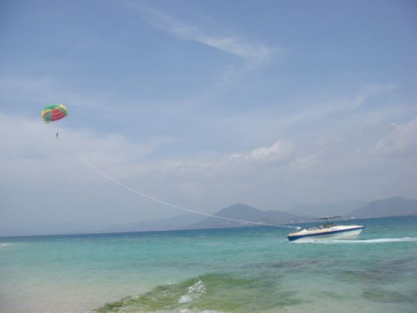 说这里是人间仙境豪不为过,湛蓝湛蓝的海水,银白的沙滩,晴朗的天空,还有天空中一个个犹如盛开在空中的鲜花一般的拖曳伞。