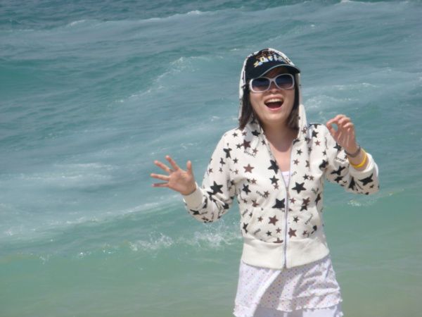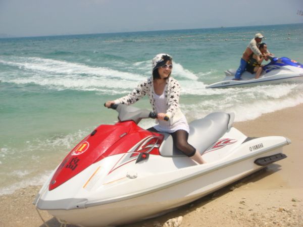 看着快艇冲到浪尖然后再重重的跌落下来,感受着瞬间的颠峰与谷底,一船人都在兴奋的尖叫。开快艇的是个非常年轻的小伙子,穿着迷彩服,带着墨镜,用很多人的话说就是“酷毙了”,看到船上的人如此的激动(尤其是还有好几个美女坐在他的身后),小伙子更来劲了,有意的迎着比较大点的浪用较快的速度冲上去,然后又放慢速度,等跌落下来。
