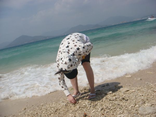 然后到了海边,不由的感叹一声:西岛的水真蓝啊!蓝得清澈,蓝得透明,比大东海的感觉还要好一些。赶紧换装,下海游泳去!