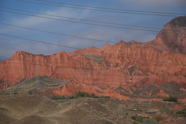 车子开到坎布拉森林公园门口时已是下午两点,景区有水路和陆路两条旅游路线,本来陆路线有专用旅游电瓶车,但是今日游客稀少,一车人很难凑齐,景区管理人员说让我们买票自己开车进去。当然这种安排更合我意,我们一路上坡就一路可俯视到李家峡水电站及两旁的丹霞地貌山峦,山体是丹红如霞的砂砾岩,这种地貌在广东韶关丹霞山、宁夏的火石寨我们都曾领略过,每一处都有它独特的风景,这里独一无二的当属与水电站的完美结合。