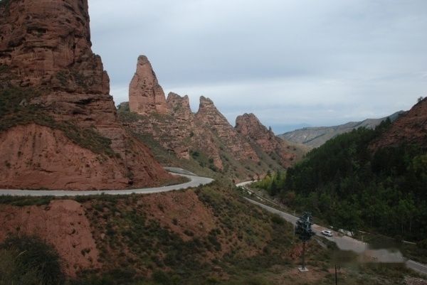 到了游客管理中心后山势渐低,我们进入了林木郁郁葱葱的南宗沟,最后到达一个木板搭成的观景台,从此处望去,万山群峰皆秀美。最后有条岔路去往贵德,附近集中了如佛手指天等圆锥状山峰,如同诡秘的城堡环绕着我们,可以想象晚上这里和魔鬼城相似的景观。我们从这里开始回程,大约晚上六点多到达黄南州州府同仁。