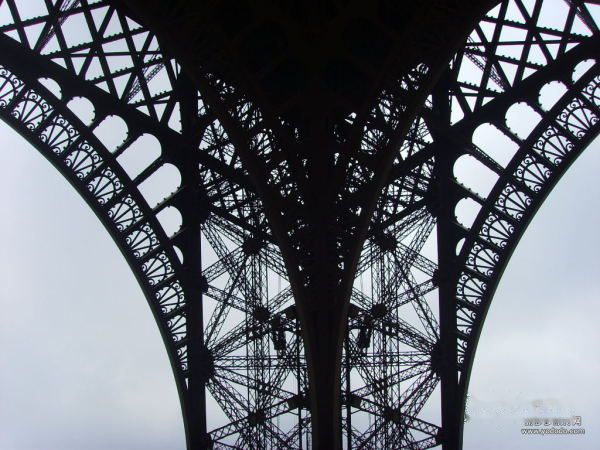 这是一张埃菲尔铁塔的照片,从这个角度看很有趣啊,不知你看出来像什么了吗?