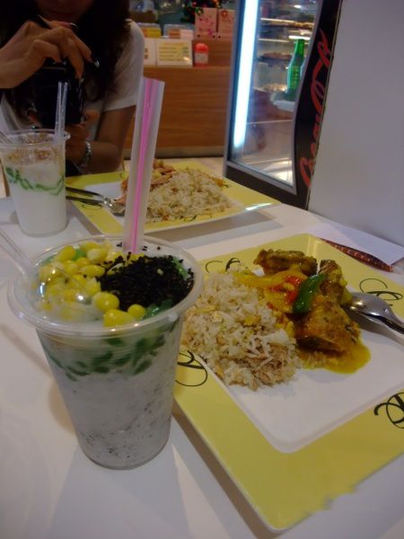 有多种选择,还有泰式蒸包和香菜糕,泰地道饮品(有绿色粉条在里面的),