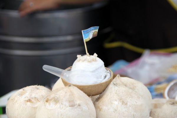 清淡的椰香味儿,甜丝丝的雪糕,脆脆的花生仁,软绵绵的椰子肉...yummy~(≧▽≦)/~