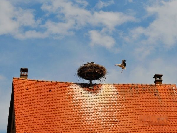 这个小镇当地人也叫仙鹤镇,还没到小镇就能远远看到天空中有掠过的仙鹤。屋顶上的仙鹤鹤巢