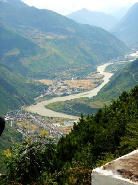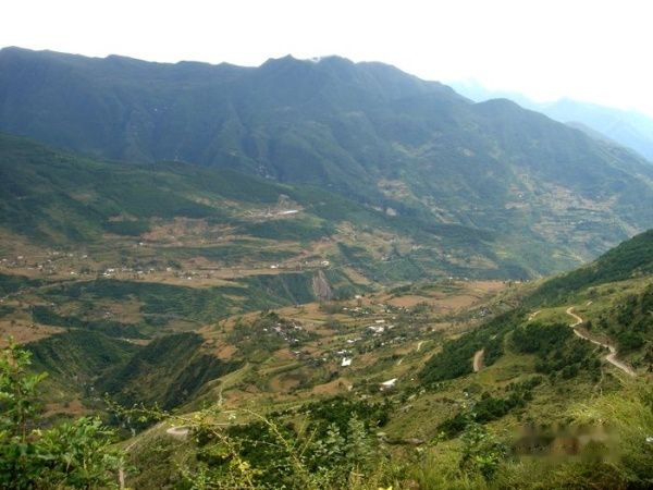 现在海报已上升到2000米左右,站在路边向下看,山坳中的村庄清晰可见。只可惜天气不好,不然可以一直看到地平线。出了二郎山隧道,便远远的可以看见大渡河了。