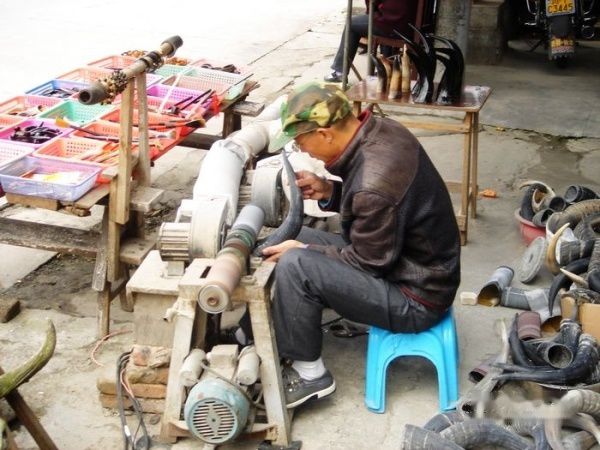 磨西镇正在做牦牛头骨的手工艺人。