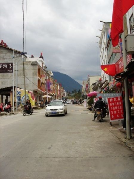 摩西小镇,后面的山上就是海螺沟。