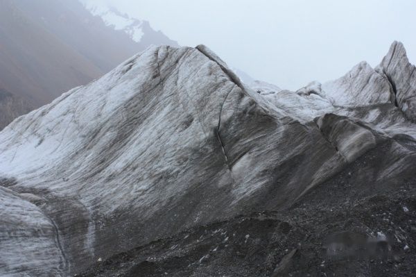 有点下雪珠。冰川看上去横着一片,不像是能获得最美称号的地方。往冰川上走了走,渐渐看到冰川的层次和纵深,果然出众。这里的冰川是白色的,和
