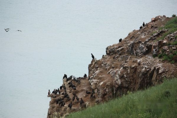 小岛。有木栈道通到观察台,但是没有建筑,只能打伞。这个季节只有鹭鹚,一种黑色的水鸟。