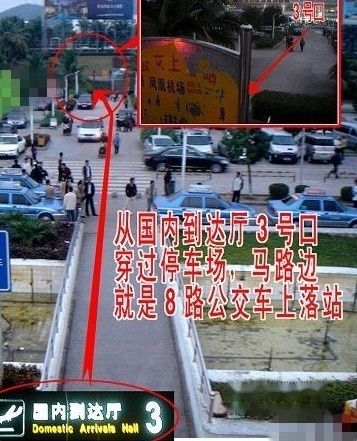 拿着背包我们第一个出来,一看到出机口的“繁华”还真怔住了,还没等我们晃过神来就一个接一个的拉客仔跑过来,“出哪里啊坐我的车,住店旅游包车很便宜。。。。。”这类人早就被我们在网上的游记给归纳为“恐怖分子”。随着椰晶珠小胖老板的介绍。我们从三号口出来后直接穿过停车场,记住一定要穿过哦,我们就是没有穿过,在路边等了好久也没看到8路车。(这是图我们走的时候在二楼拍的)