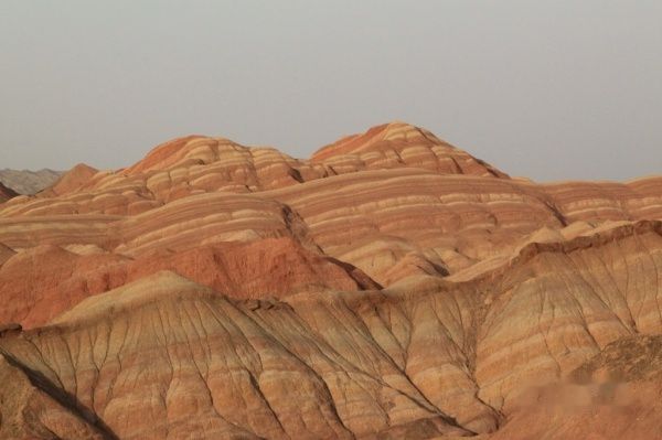 距离第一个彩丘不远,就是气势磅礴的七彩屏。一长条整整齐齐地红黄相间,一层层地绵延不绝,不得不赞叹大自然的鬼斧神工。