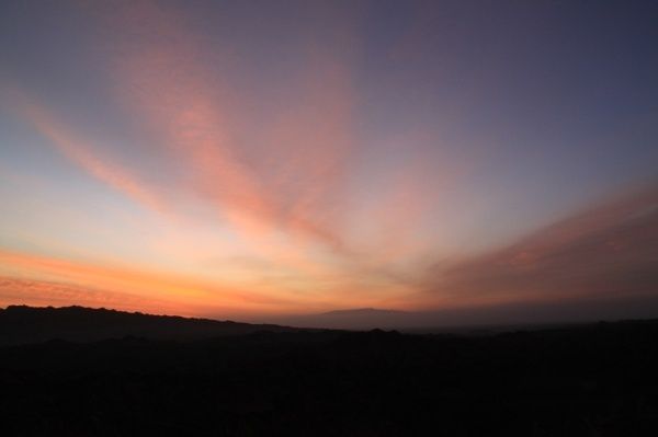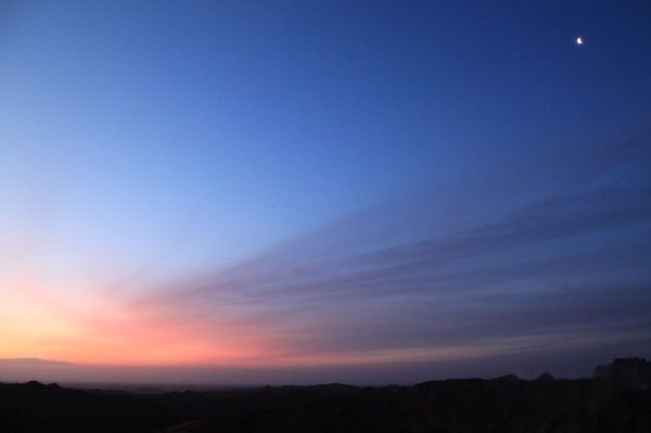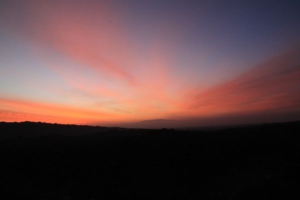 第二天一早,4点50分出门。5点半到达了“刀山火海”观景台看日出。这一天的辛苦早起真没白费,那天的日出很赞。西边月亮还没有下山,亮晃晃地挂在天上,东边已经被朝霞染红了一片。