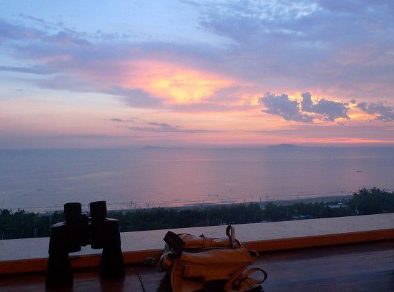 我和朋友很快换上了裙子,迫不及待地奔向海边,远远就闻道了海水的腥味,听见海浪拍打沙滩的声音,我们欢呼着跑向大海,任由海水亲吻着我们的脚,很舒服,很惬意。海里有很多人在游泳,我们也想马上跳进海里,这时才后悔刚刚没有直接穿泳衣出来。于是我们匆匆拍了几张照片后,又立刻回旅馆换了泳衣,这次真的可以跟大海来个深情相拥了。一不注意,一个海浪打过来,我们都被呛了海水,海水入到口中味道很咸,我们在海里玩着舍不得上来