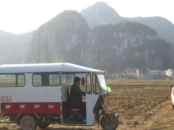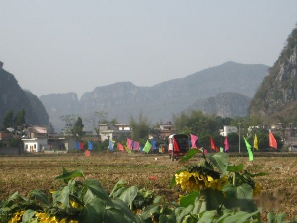中午1:30左右,司机让我们下车之后,继续开往县城。我们在上林街头找了一辆三轮摩的,跟司机谈好价格为19元后,驶往耀军村的葵花田。
