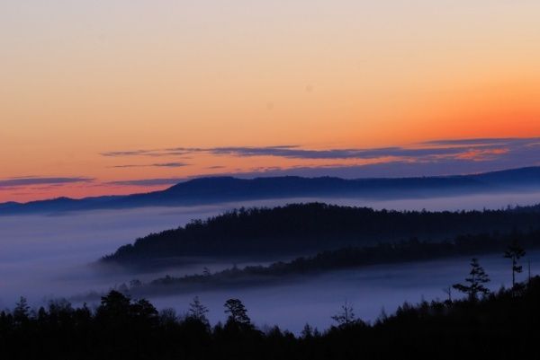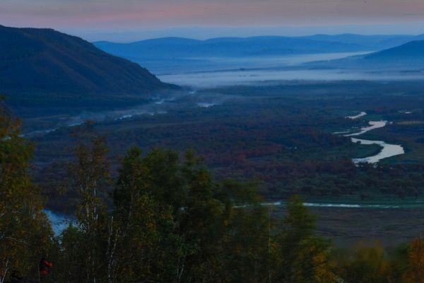 住根河市。早晨拍河湾的日出。阴天没拍到什么。上午去根河林区。因不是旅游地点。进林区要好多手续,自驾恐怕进不去了。据说是紫日的拍摄点。今年色彩不好。据来过的驴友说去年很美。