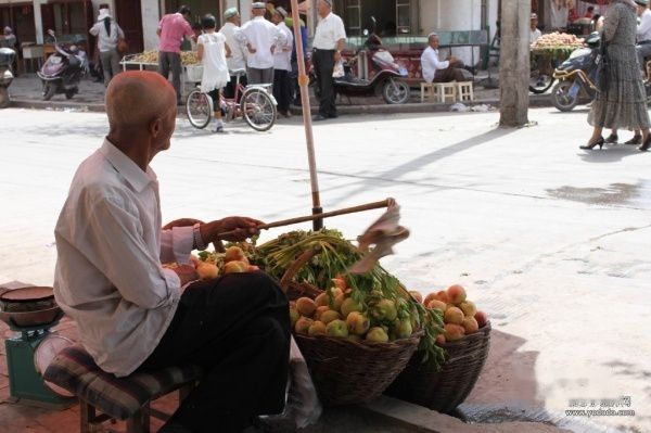 从清真寺出来,瀚之嚷嚷着要吃饭,随行的司机大哥卡斯木便带着我们向小吃街走去。