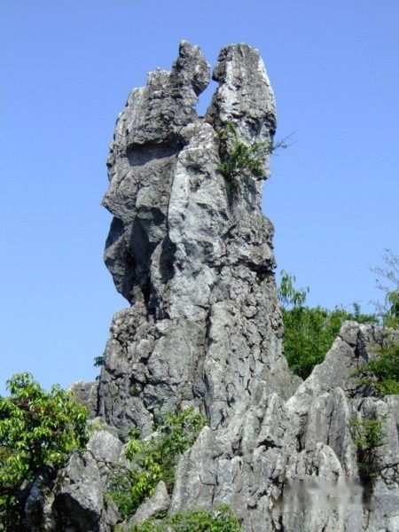华蓥山的石柱雄壮挺拔,石生树、树缠石等自然景观随处可见,旅游区内的植被更是枝繁叶茂、郁郁葱葱。流连在这奇山怪石、香花异草中真让人有点乐不思蜀之感。