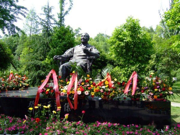 花丛中的小平铜像